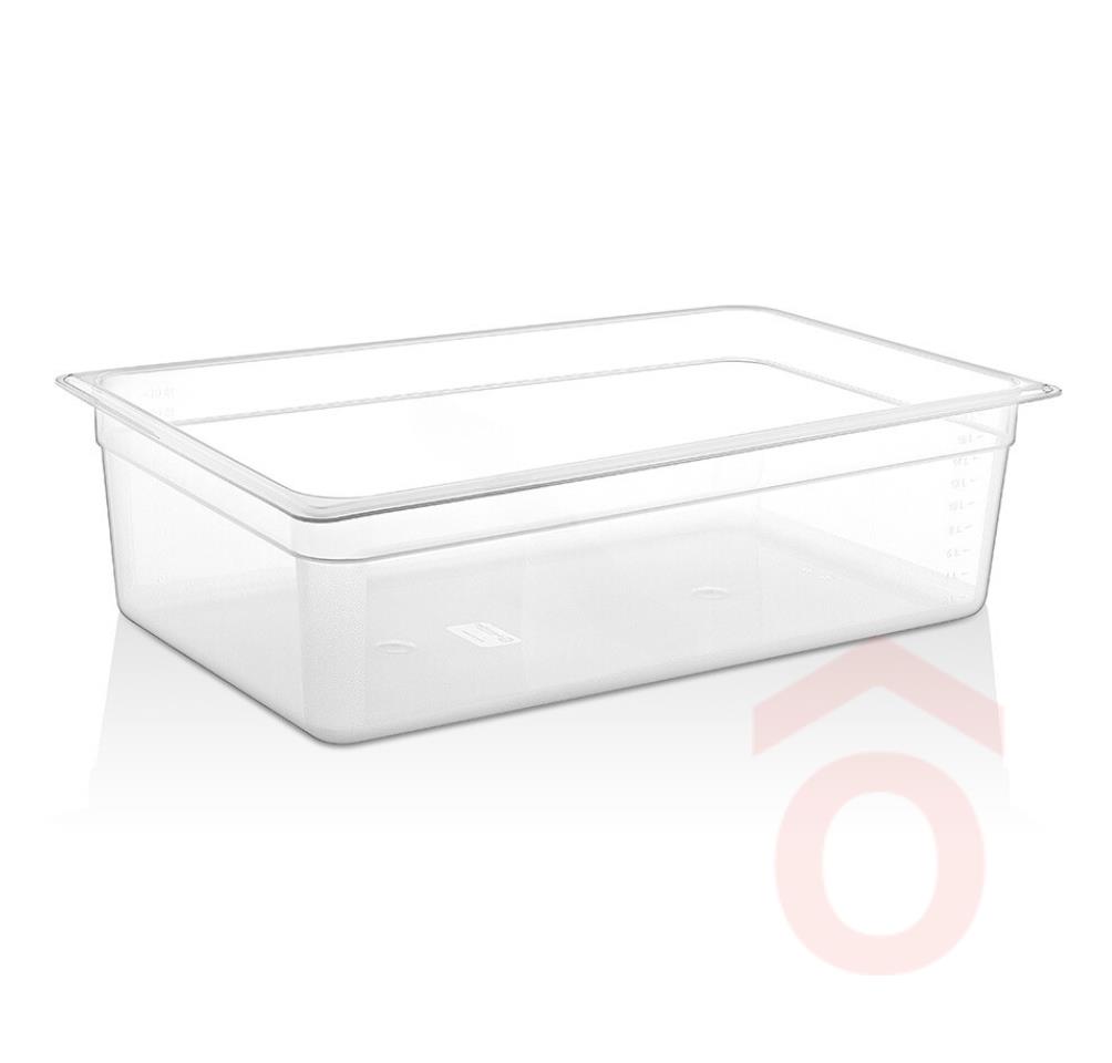 Polikarbonátból készült GN edény, ételek tárolására, szállítására, bemutatására használt tároló edény. Egymásba rakható.Nem ajánlott nehéz vegyszerekkel tisztítani. Ellenálló hőmérséklet -40 / + 99 fok között.