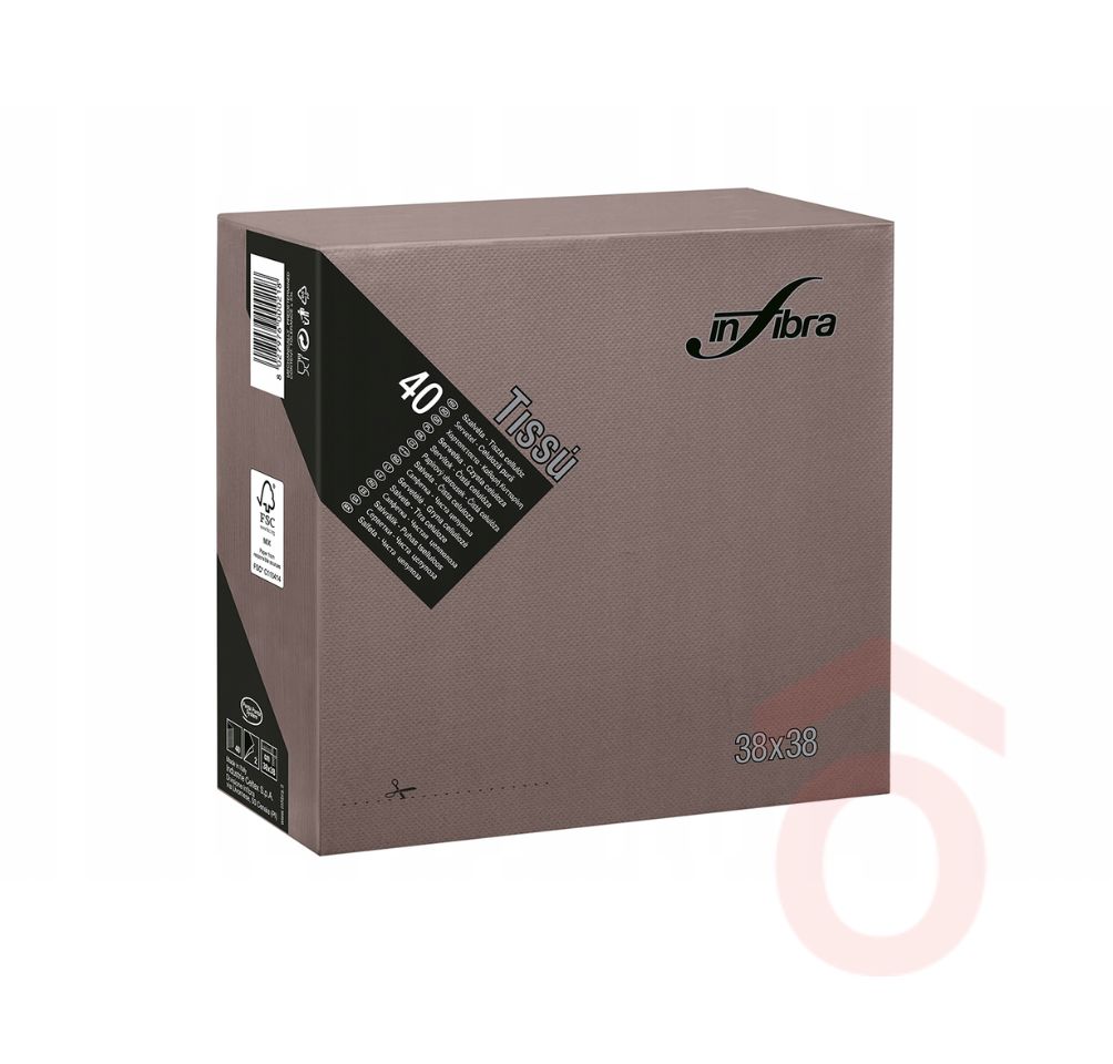 Stílusos és elegáns megoldás éttermi és otthoni terítésekhez – az Infibra texturált csokibarna szalvéta meleg, hangulatos megjelenést kölcsönöz az asztalnak. 2 rétegű kialakításának köszönhetően erős, ugyanakkor kellemes tapintású.