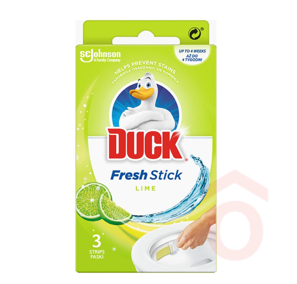A Duck WC öblítő csík lime illattal öblítéskor aktiválódik, és láthatatlan védőréteget képez a WC-csésze felületén. Ez segít megelőzni a vízkő- és szennyeződéslerakódást, miközben minden használat után friss illatot biztosít.