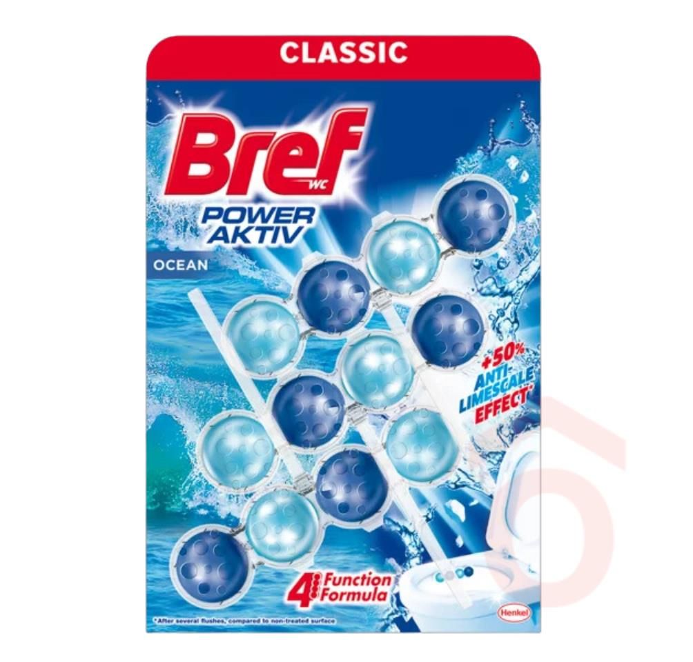 A Bref WC illatosító óceán illattal hosszan tartó frissességet és ragyogó tisztaságot biztosít 3 darabos kiszerelésben. Minden öblítésnél aktív habot képez, eltávolítja a szennyeződéseket és segít megelőzni a vízkőképződést. A friss, tengeri illat kellemes légkört teremt a mellékhelyiségben.