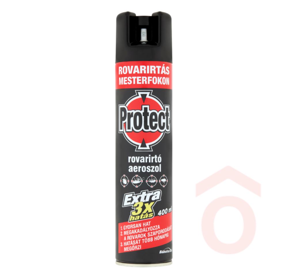 A Protect extra rovarirtó aeroszol hatékony megoldás a lakásba nagy számban betolakodó mászórovarok gyors és tartós kiirtására. Alkalmas csótány, ágyi poloska, hangya, bolha, ezüstös pikkelyke és pók ellen is. A készítmény nemcsak a kifejlett rovarokat pusztítja el, hanem lárvaellenes hatása révén a szaporodásukat is meggátolja. Ideális rejtett életmódot folytató rovarok búvóhelyeinek kezelésére, például padló- és falrések, ajtó- vagy ablakrések környékére.