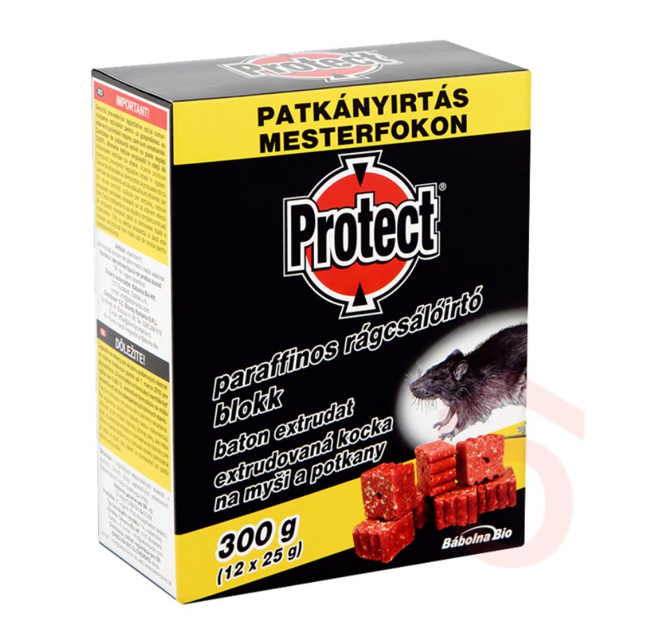 A Protect paraffinos rágcsálóirtó blokk hatékony megoldást nyújt egerek és patkányok irtására, akár nedves környezetben is. A csalétek paraffinbevonata ellenáll az időjárás viszontagságainak, így kültéren és beltéren egyaránt megbízhatóan működik. A bordázott kialakítás nagyobb rágófelületet biztosít a rágcsálók számára, ezáltal fokozva a csalogató hatást. A blokkok rögzíthetők a rajtuk lévő lyuk segítségével, így megakadályozható azok elhordása. Ideális választás gazdaságokba, pincékbe, garázsokba vagy ipari területekre is.