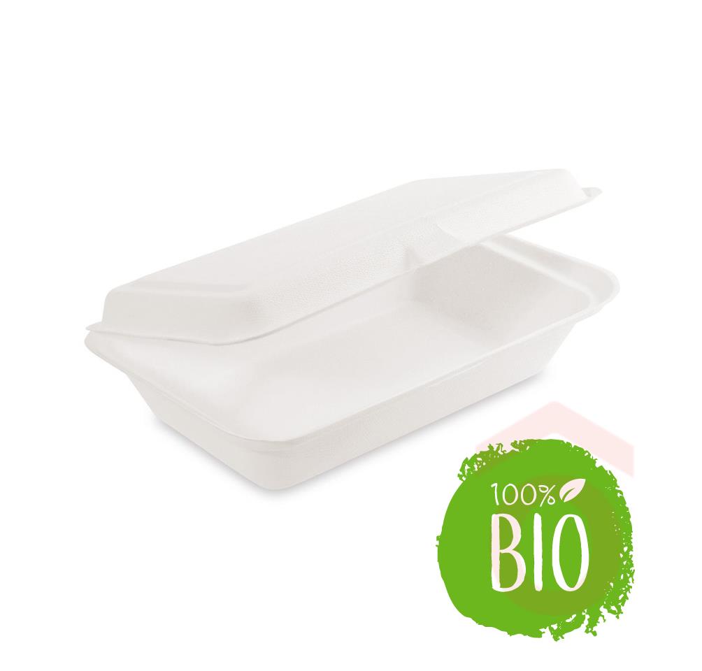 Lebomló BIO elviteles doboz, amely kiváló alternatívája a hagyományos müanyag csomagolóknak. A doboz bagasse-ból, azaz cukorgyártás során keletkező melléktermék alapanyagából készül, mely környezetbarát és biológiailag lebomló.
