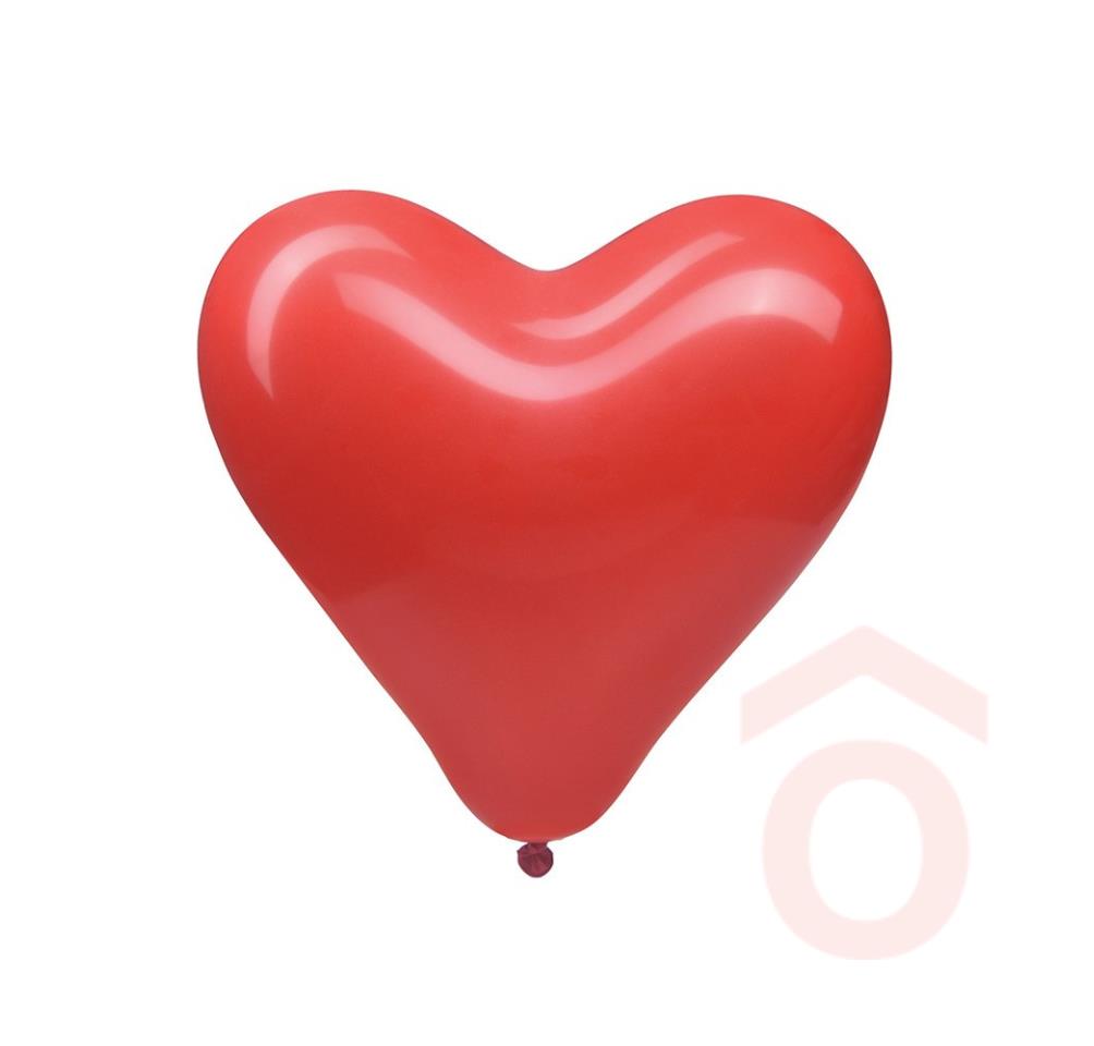 Szív alakú, piros lufi. Levegővel vagy héliummal való feltöltésre alkalmas