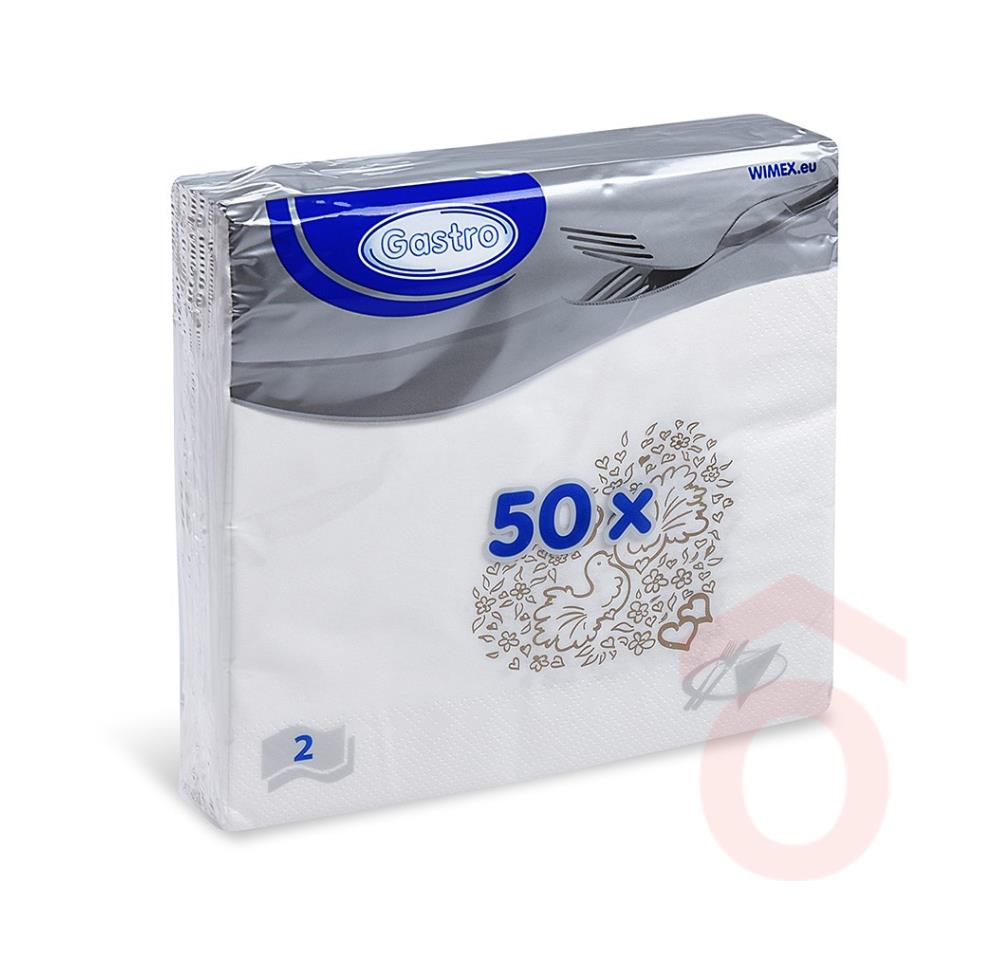 Kiváló minőségű szalvéta elegáns színben, esküvői mintával, puha tapintású és jó nedvszívó képességű. Webáruházunkban több színben kapható két rétegű szalvéta.