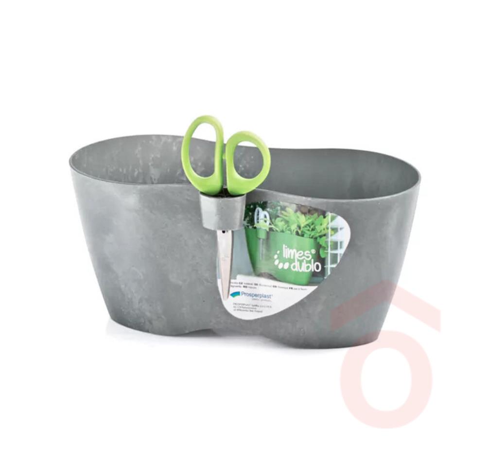 Modern formadesignnal rendelkező, többféle színben kapható, fűszernövények termesztésre/nevelésére alkalmas műanyag virágcserép. Ollótartó nyílással rendelkezik valamint a virágcseréphez tartozékként jár a speciális hárompengés Herbs Cut olló is. Formatervezése végett tökéletesen helytáll a modern konyhák, teraszok díszeként is.
