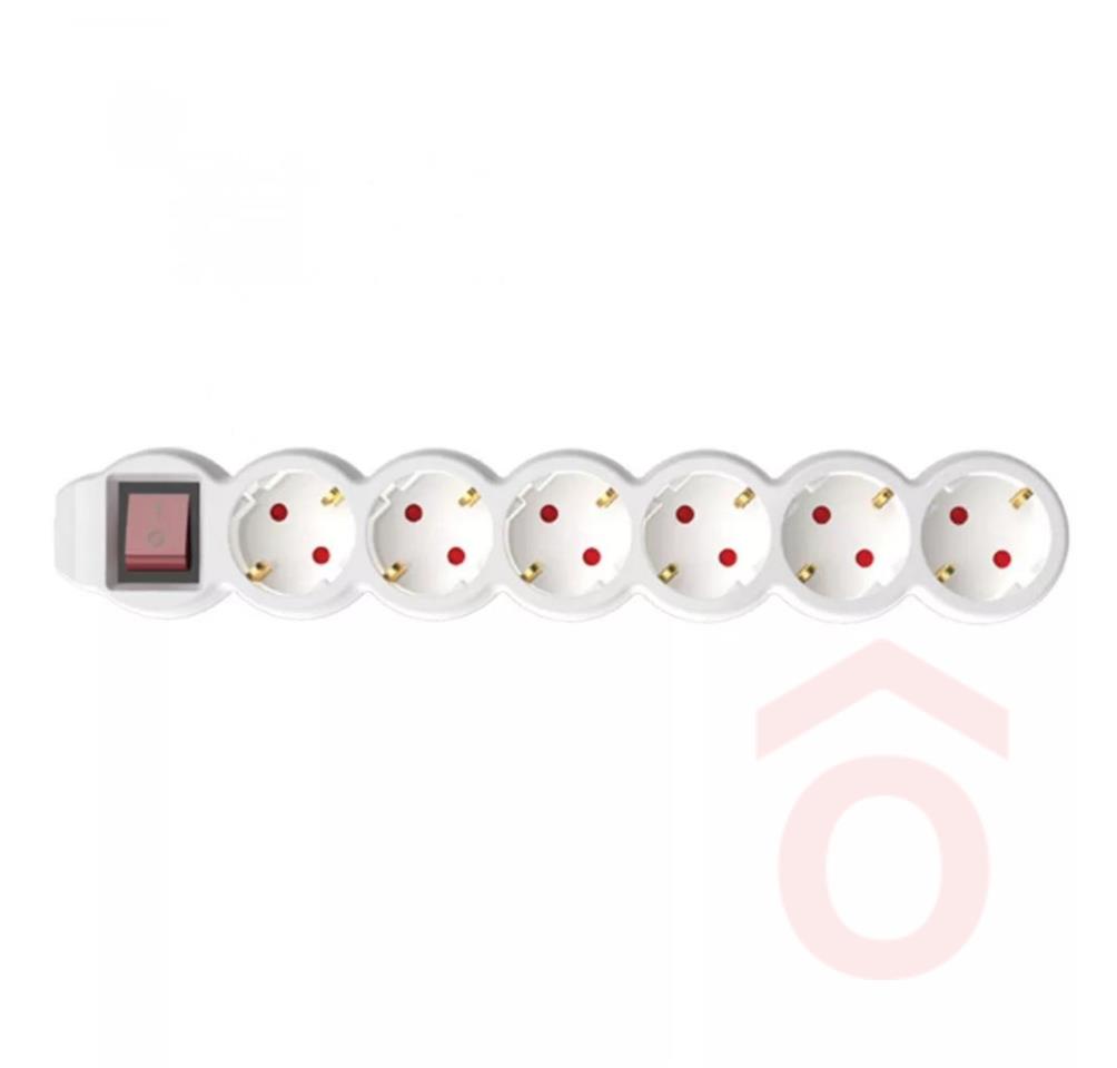 Az NV 6K/WH/ Hálózati elosztó fehér színű, 6 db aljzattal ellátott egy fő kapcsolóval áramtalanítható. 1,5 m hosszú H05VV-F 3G1,0 mm2 kábellel felszerelt. A biztonságos használat érdekében gyermekvédelemmel ellátott. Maximum 3500 W-ig terhelhető.