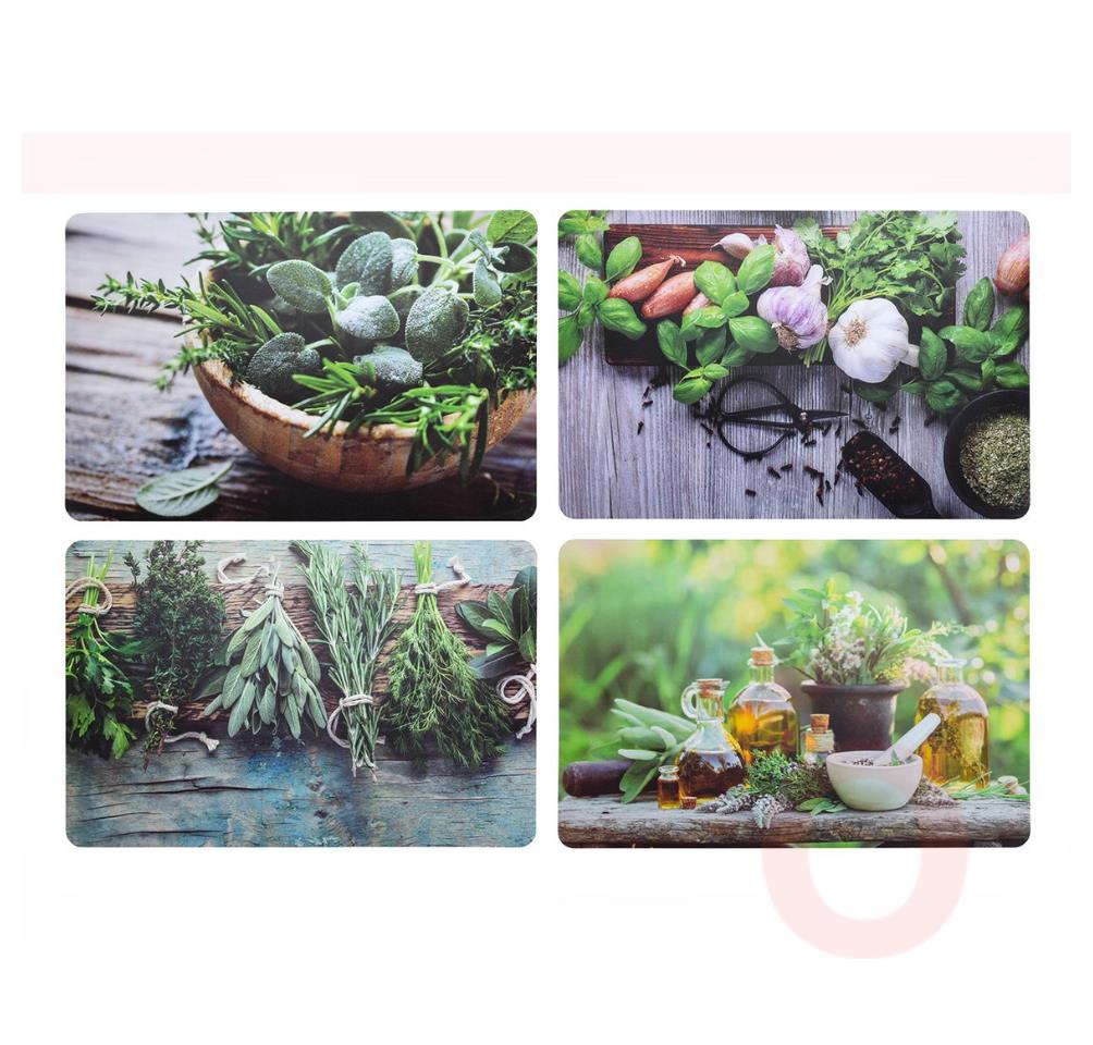 Műanyag tányéralátét 4 féle fűszer mintával.
