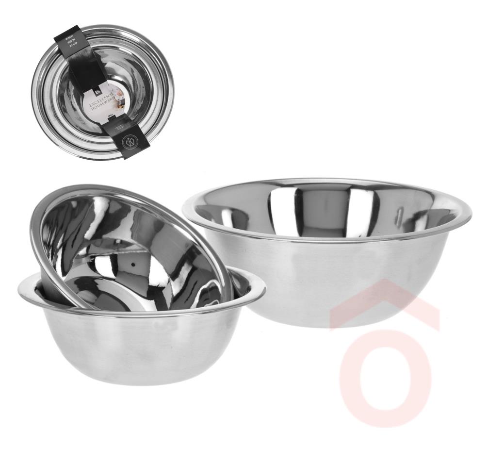 Különböző készítmények összetevőinek összekeverésében hasznos társunk lehet a konyhában. A készlet három tálból áll, amelyek rozsdamentes acélból készültek, fényes kivitelben. Keverőtálak méretei: átmérő - 18/20/24 centiméter és magasság - 6,8/7,5/8,5 centiméter.