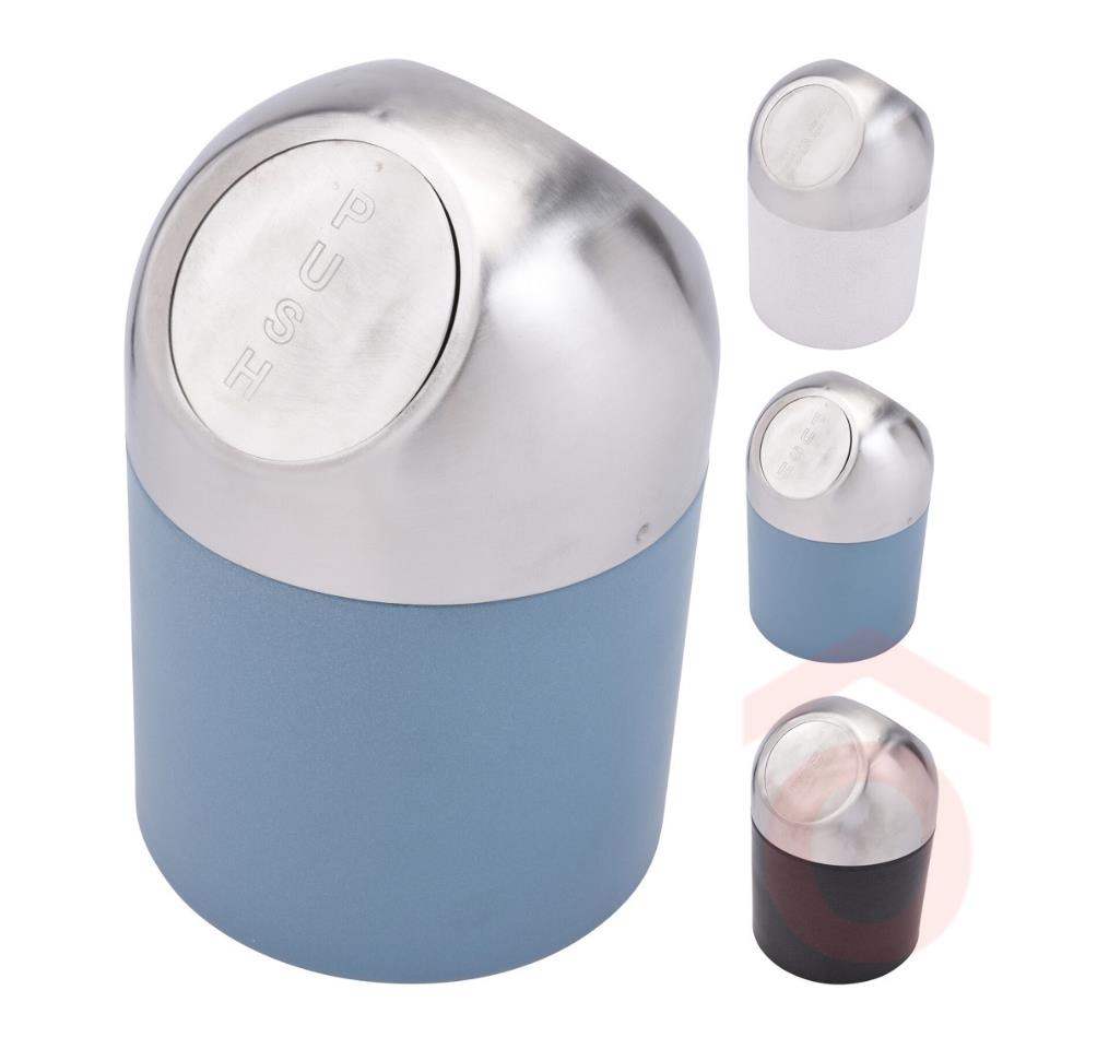 Kis méretű asztali szemetes tartó, billenő fedéllel.