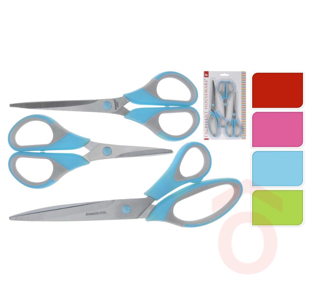 Praktikus, 3 különböző méretű olló, 4 színváltozatban.