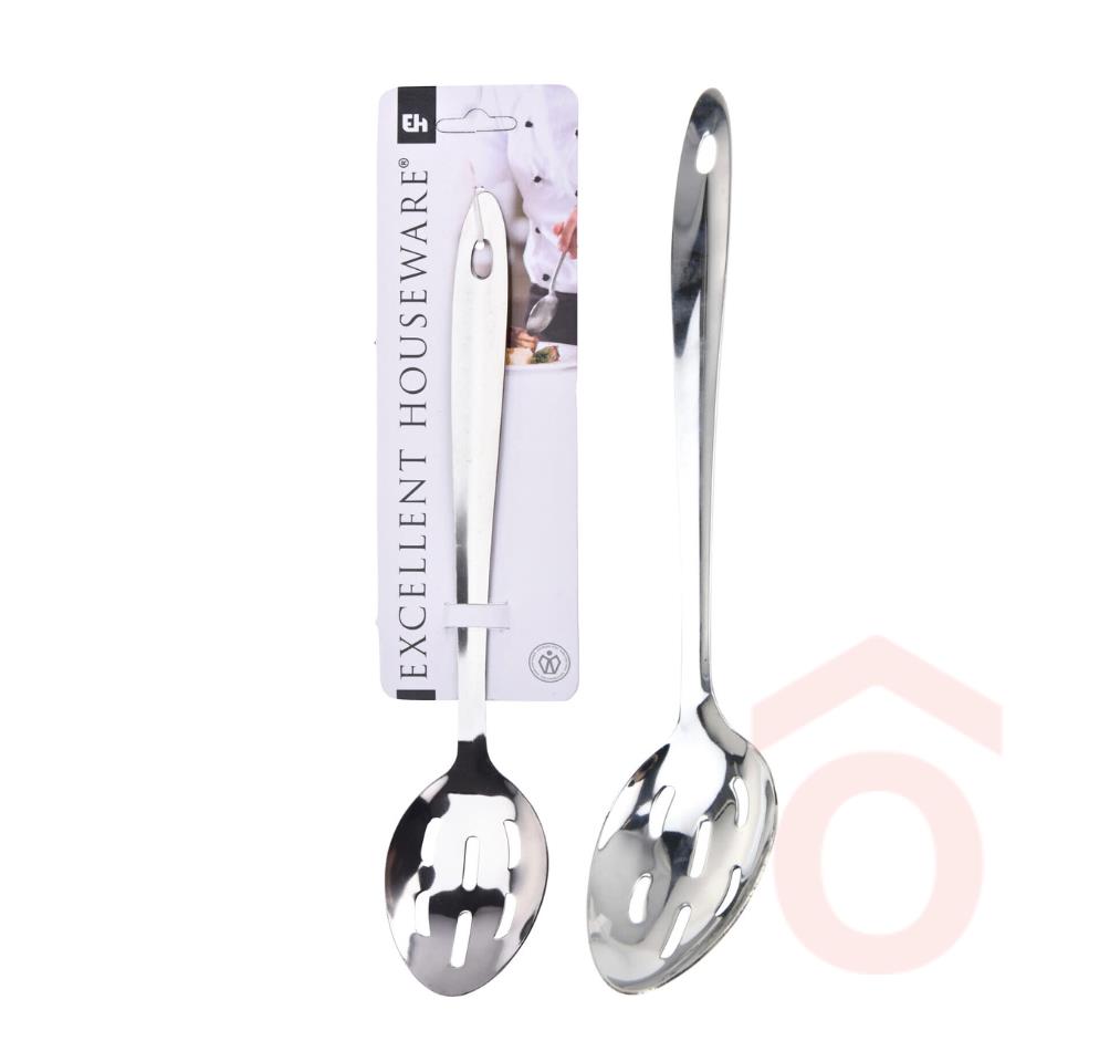 Rozsdamentes acélból készült perforált spicckanál, szószok és öntetek tálalására használt konyhai felszerelés.