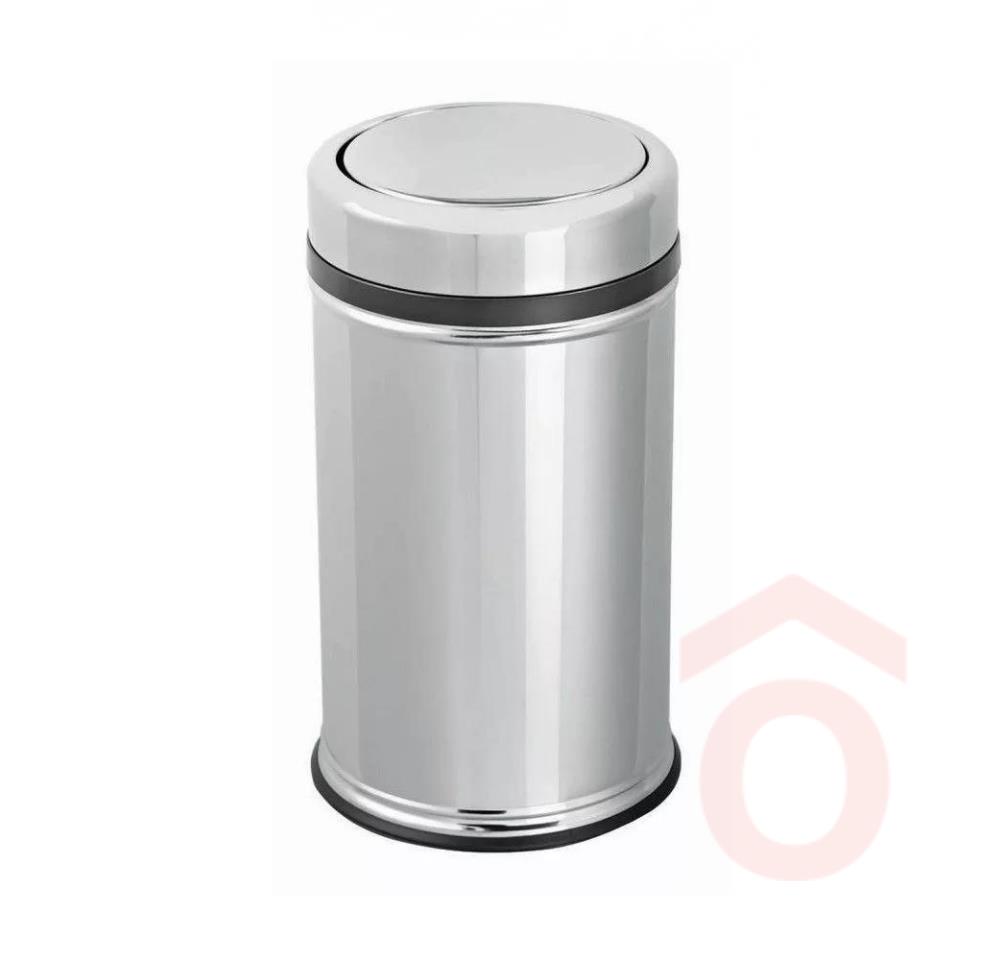 Rozsdamentes acél (430-as minőség) henger billenőfedeles szemetes fényes króm színben.