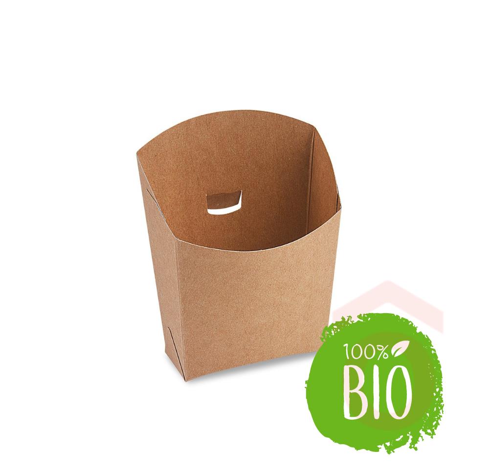 Környezetbarát, egyszerhasználatos BIO doboz sült burgonya és egyéb gyorsételek szervírozásához és elviteléhez. Ideális választás street food pultokba, éttermi kiszolgálópultokra és fesztiváli kitelepülésekre.