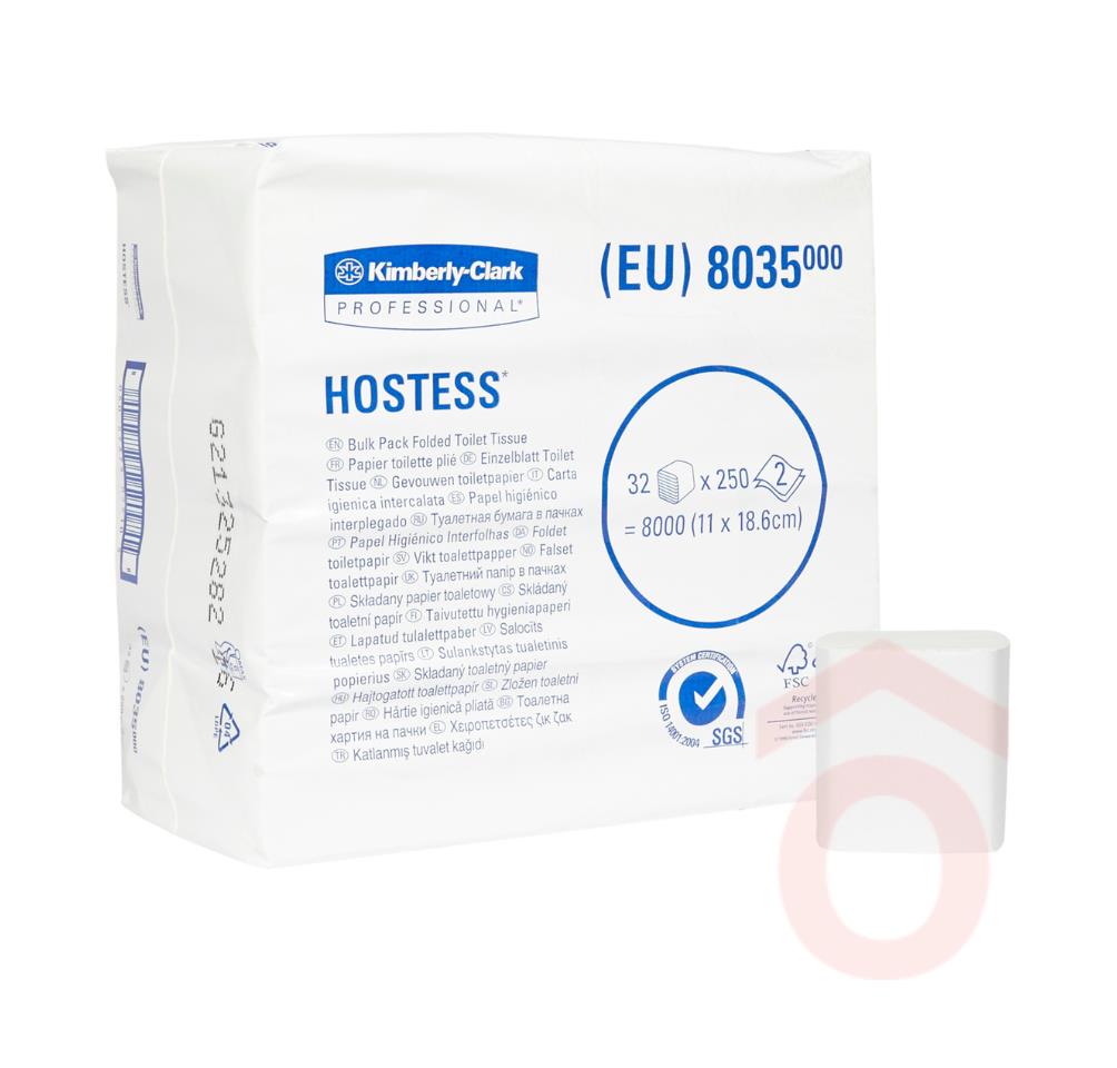 Kimberly Clark hajtogatott toalettpapír. Víz hatására azonnal oldódik, ezért nem okoz dugulást. Hajtogatott toalettpapír, a legjobb megoldás a mosdó számára. A hajtogatott toalettpapír illik a helyiség jó megjelenéséhez, ellenőrizhető a felhasznált mennyiség, és higiénikus. Minden alkalommal egy új, friss lap használható, melyet egyedül a használó érint meg ez higiénikusabb megoldást nyújt.