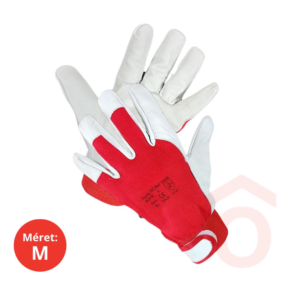 Természetes juhbőrből készült tenyér és ujj részek, kötött pamut kézhát, 30 mm gumírozott, elasztikus, tépőzáras mandzsettával.Védelmi képesség: EN 420:2003+A1:2010 EVE 2. kategória – közepes, általános kockázat elleni védelemre EN388 2121X