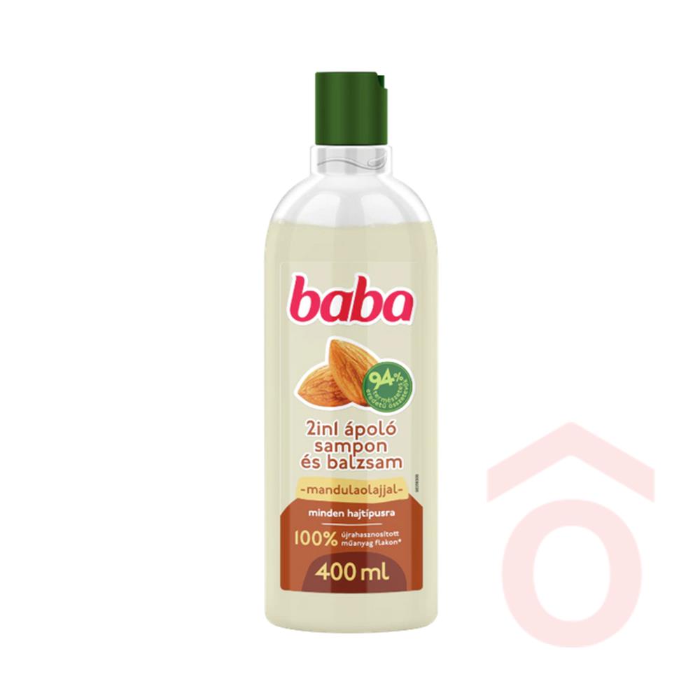 A Baba 2 az 1-ben sampon és balzsam mandulaolajjal gyengéden tisztít és hidratál, miközben minden hajtípus számára ideális napi ápolást biztosít. A mandulaolaj tápláló hatásának köszönhetően puhábbá és kezelhetőbbé teszi a hajat.