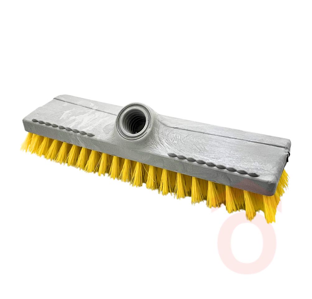 Csavarós menettel ellátott súroló kefe fej, műanyag szálakkal, nélkülözhetetlen takarítóeszköz szennyeződések eltávolításához. Élelmiszeripari felhasználásra.