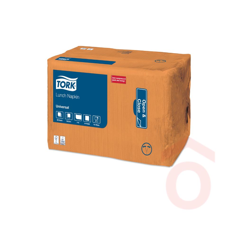 A Tork egyrétegű szalvéta narancssárga színe segít meleg, barátságos hangulatot teremteni éttermekben, gyorséttermekben vagy rendezvényeken. Az 1 rétegű kialakítás költséghatékony megoldást biztosít, így ideális nagy forgalmú helyekre. A 33 x 33 cm-es méret és az 1/4 hajtás egyszerű tárolást és gyors adagolást tesz lehetővé. A szalvéta emblémázható felülete további lehetőséget biztosít arculati elemek vagy reklámüzenetek elhelyezésére.