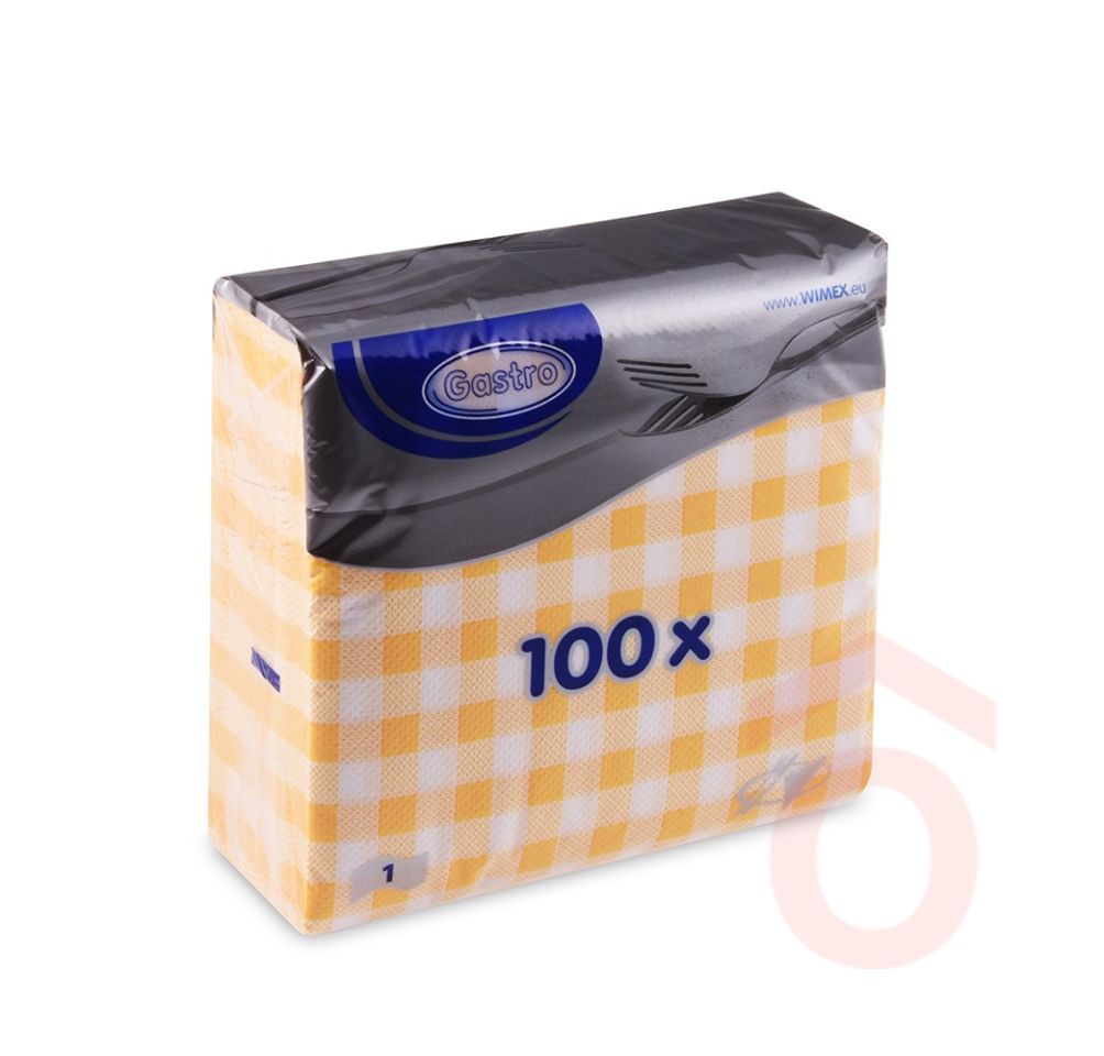 Szalvéta papír 33x33cm 1/4 1r. 100db kockás sárga 70555