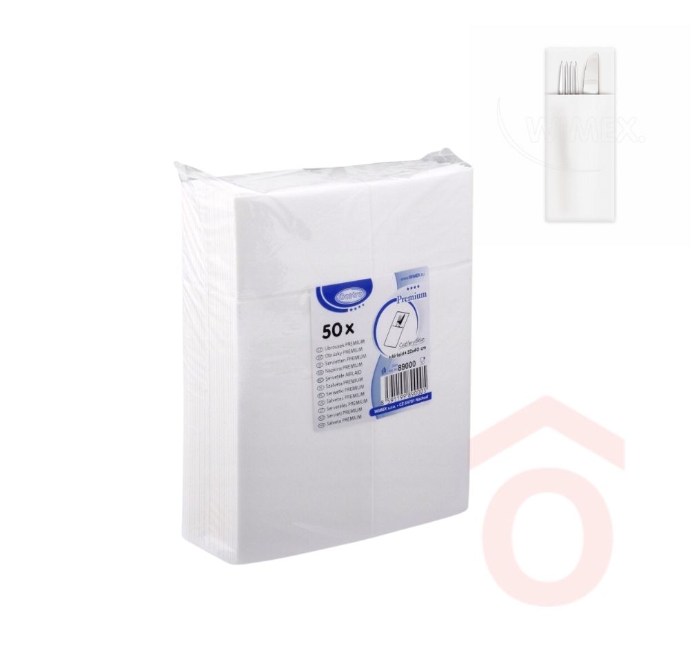 Szalvéta prémium 32x40cm 1/8 50db fehér evőeszköztartó 89000
