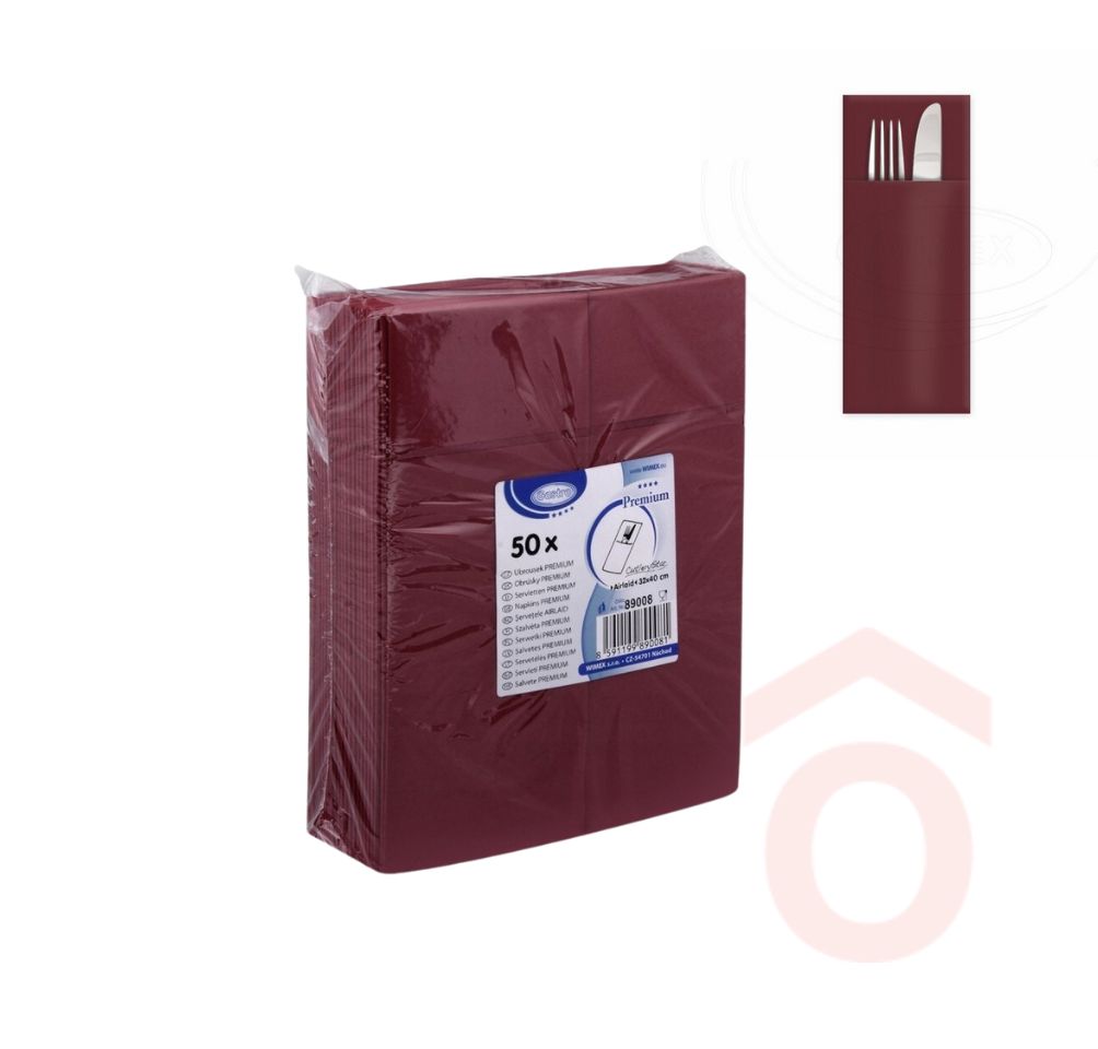 Szalvéta prémium 32x40cm 1/8 50db bordó evőeszköztartó 89008