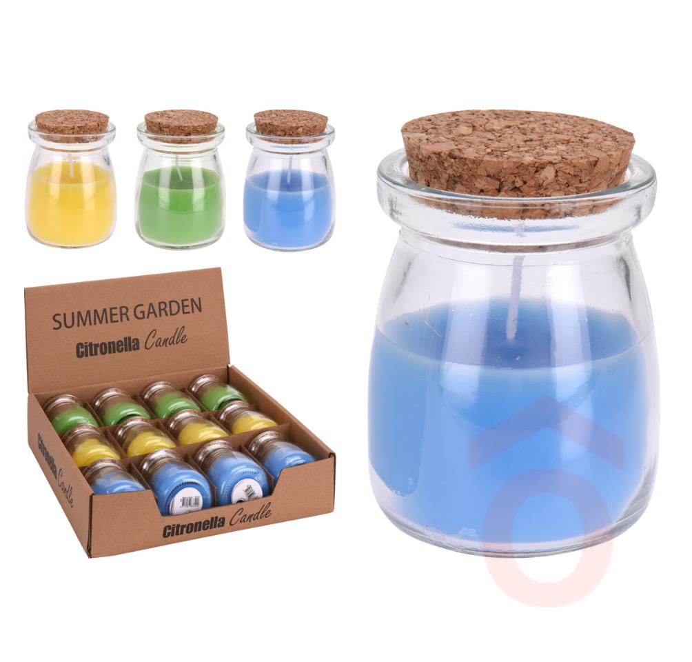 Kellemes citromfű illatú gyertya üvegben, a szúnyogok és rovarok ellen. Kiválóan távol tartja kint az idegesítő rovarokat a kempingezés vagy grillezés során. Illóolaj tartalma allergiát okozhat (geraniol, citronellol). Az üveg parafa tetővel visszazárható. 3 féle gyertyaszínben.