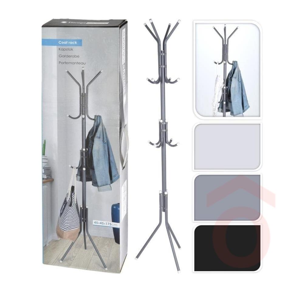 Könnyen összeszerelhető 12 fogassal ellátott előszobai ruhatartó.