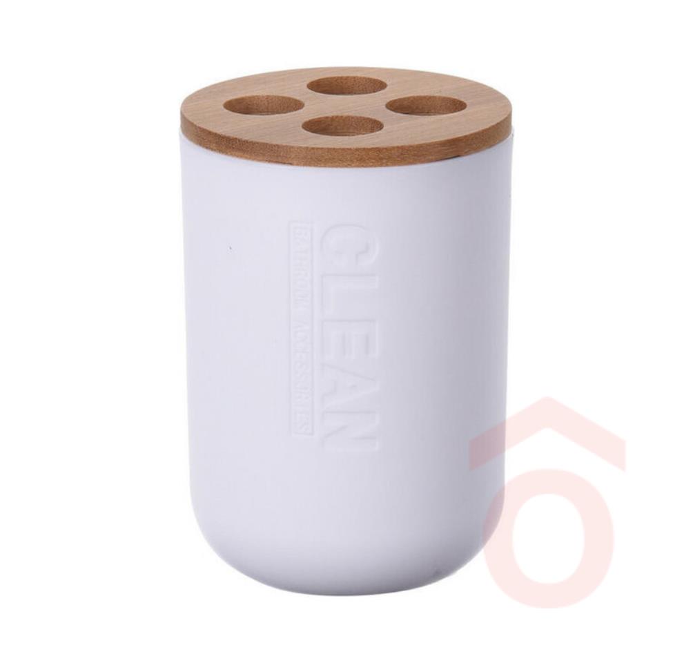Tegye stílusossá fürdőszobáját ezzel az elegáns fehér és bambusz fogkefetartóval, amely modern megjelenésével harmonikusan illeszkedik bármilyen fürdőszobai dekorációhoz.