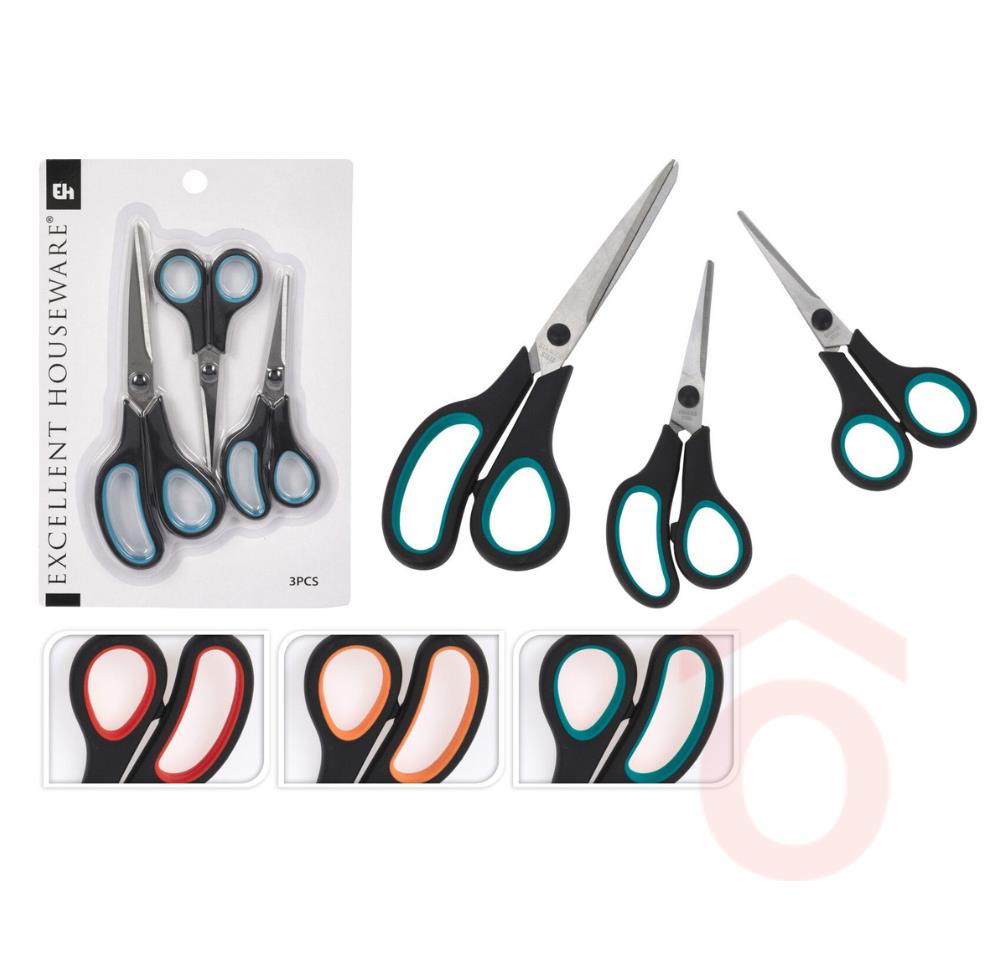 Praktikus, 3 különböző méretű olló, 4 színváltozatban.