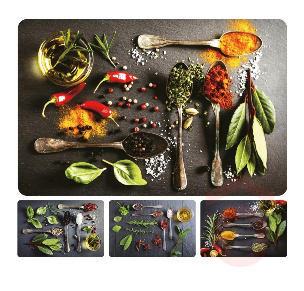 Műanyag tányéralátét gyógynövény designnal (képen látható minta).