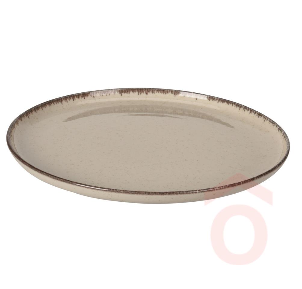 Nagyméretű, 27 cm átmérőjű kőedénytányér, amely modern dizájnnal és érdekes színekkel, bézs/barna árnyalatokkal tarkítva tűnik ki. Lágy fényes felülete is vonzó. Használható tányérnak vagy tálcának harapnivalókhoz vagy süteményekhez. Bármilyen szerepben tökéletesen működik. Nagyon ellenálló, mosogatógépben mosható és mikrohullámú sütőben használható.
