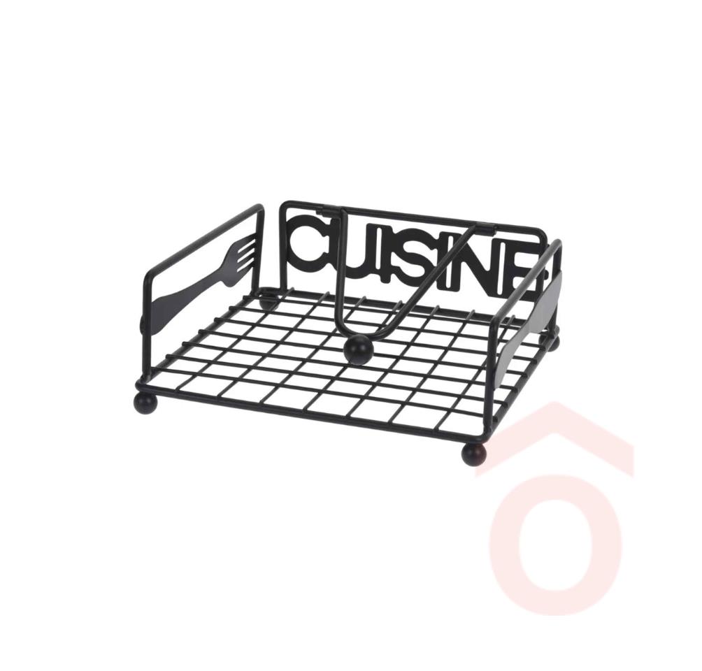 Acél szalvétatartó, fekete színben. Hagyományos konyhai és étkezőasztal kiegészítő vonzó kivitelben. A pozícionáló gömbnek köszönhetően a szalvéták a helyükön maradnak és könnyen kihúzhatóak.