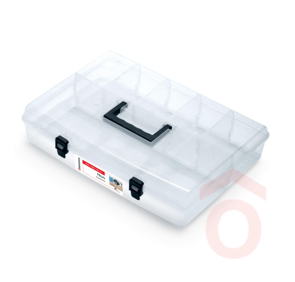 Kis elválasztó rekeszekkel rendelkező átlátászó tárolódoboz hasznos megoldás lehet műhelyekben apró tárgyak szorítozásához.
