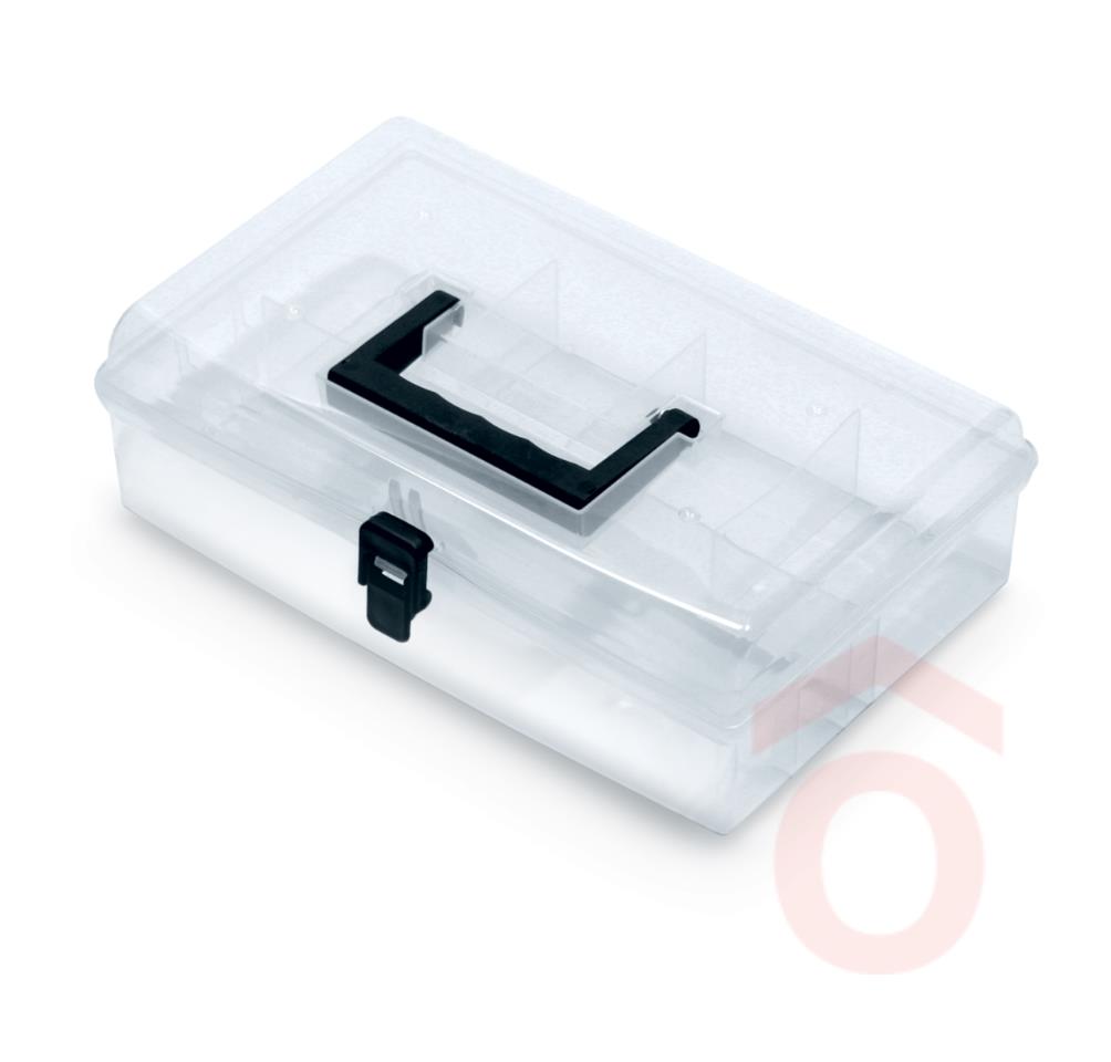 Kis elválasztó rekeszekkel rendelkező átlátászó tárolódoboz hasznos megoldás lehet műhelyekben apró tárgyak szorítozásához.