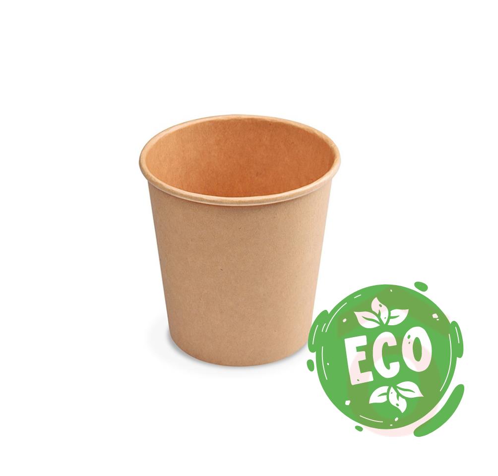 Egyszerhasználatos, környezetbarát papírpohár, amely ideális alternatívát kínál a műanyag poharak helyett. Kiválóan használható kávézókban, éttermekben és büfékben, ahol elvitelre vagy helyben fogyasztásra kínálnak hideg és meleg italokat. Natúr barna színe letisztult és környezettudatos megjelenést biztosít.