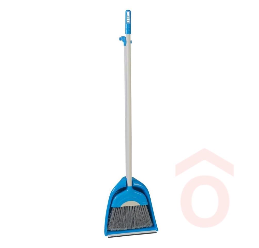 Szemeteslapát műanyag álló hosszú nyéllel+seprű 110cm kék