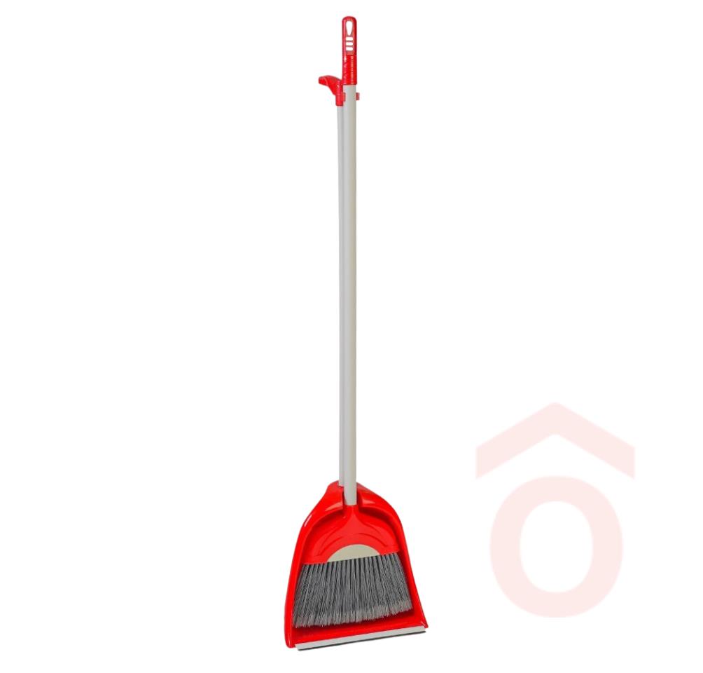 Szemeteslapát műanyag álló hosszú nyéllel+seprű 110cm piros