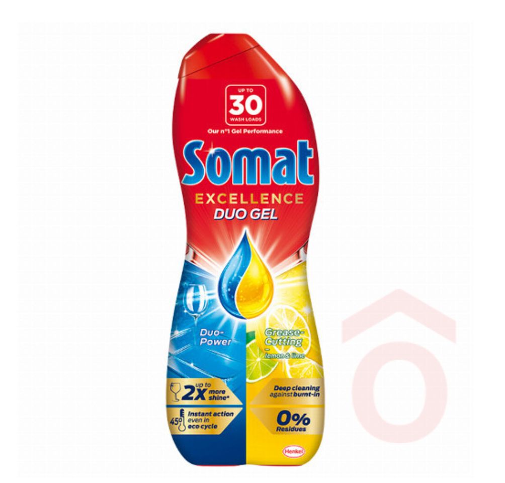 A Somat Duo Power gépi mosogatógél egyedülálló kettős hatású formulával biztosít mélytisztítást és csillogó tisztaságot. Az aktív zsíroldó komponens hatékonyan megbirkózik az odaégett szennyeződésekkel, míg az extra fényt adó összetevő gondoskodik a poharak és edények ragyogásáról.