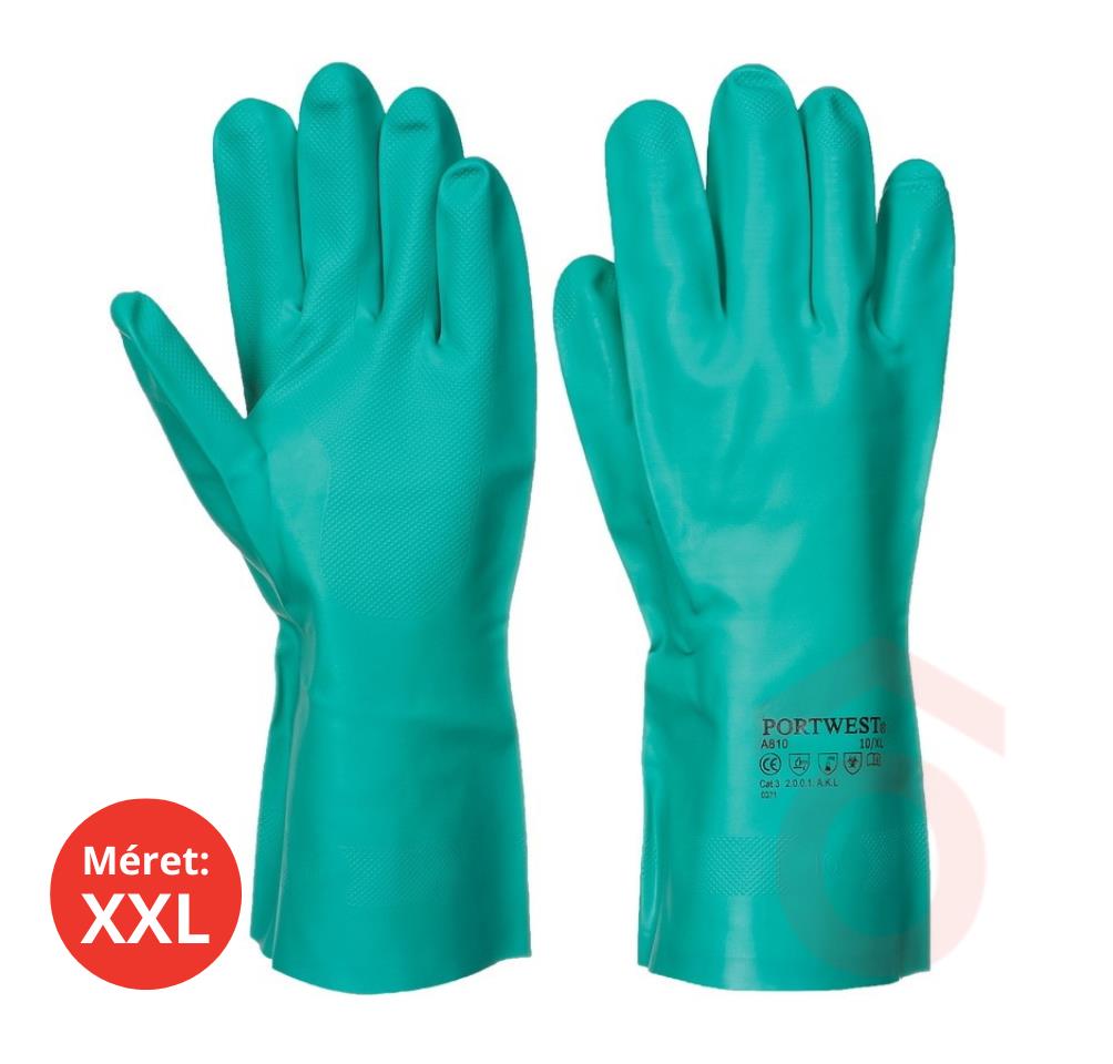 Nitrosafe vegyszerálló kesztyű. Vegyszerálló védőkesztyű csúszásmentesített tenyérrel. Kényelmes pamut belsővel rendelkezik. Ideális a vegyipar olajipar és az élelmiszeripar számára.