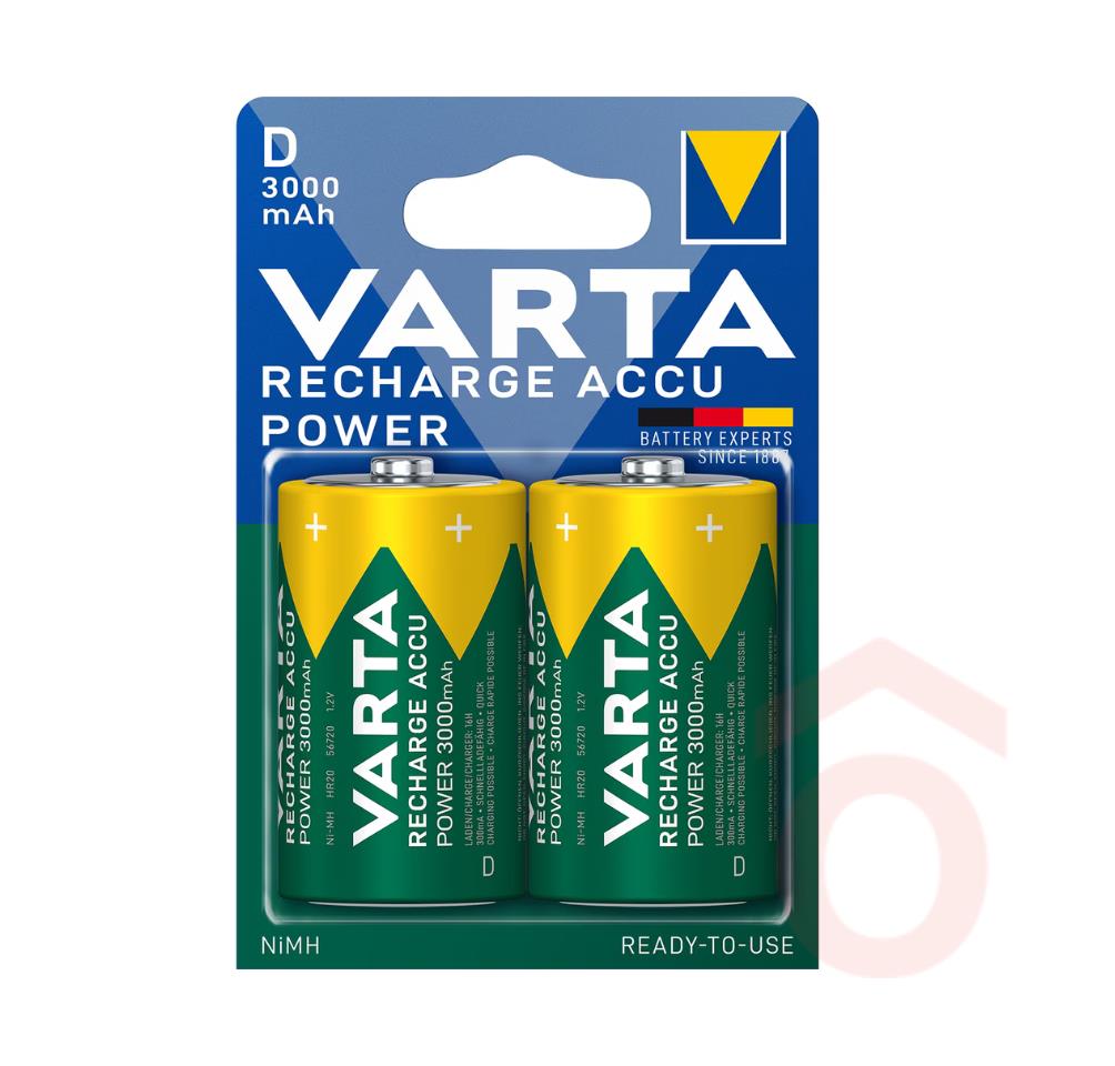 A VARTA Recharge Accu Power újratölthető akkuk biztosítják a legszélesebb NiMH-kínálatot a piacon, és egyben a legjobb energiamegoldást a mindennapi használatban lévő eszközökhöz. Az alacsony energiafogyasztású eszközöktől kezdve az alapvető energiaigények kielégítésén át a nagy fogyasztású, nagy energiaigényű eszközökig. A VARTA Power Accus minden mérete és kapacitása „Azonnal használható” és nagyon alacsony önkisütéssel bír a legmagasabb szintű ügyféligényeknek való megfelelés érdekében.