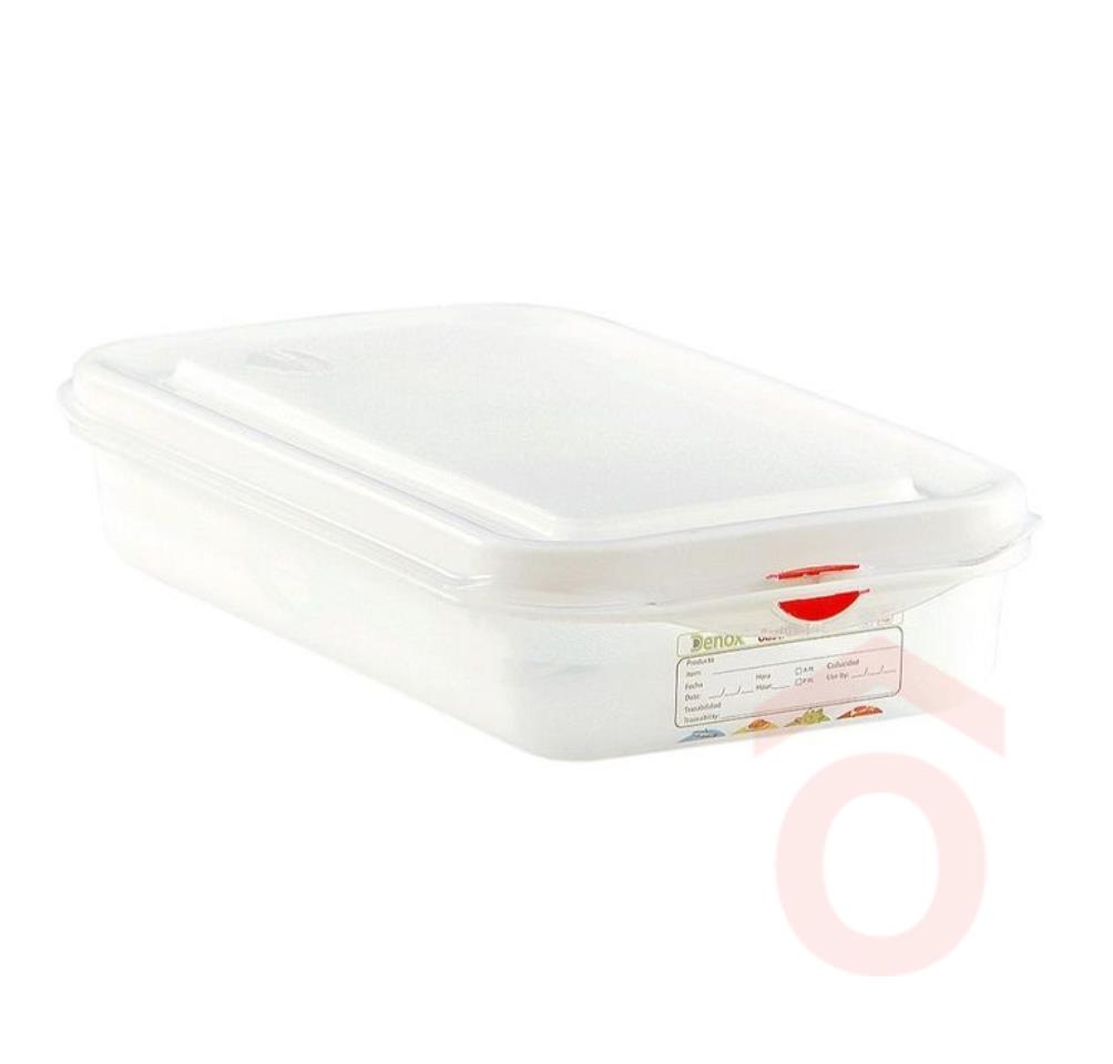 Műanyagból készült, hermetikusan zárható 1/2-es GN edény. Feliratozható. Nem használható sütőben. Mikrohullámú sütőben használható.