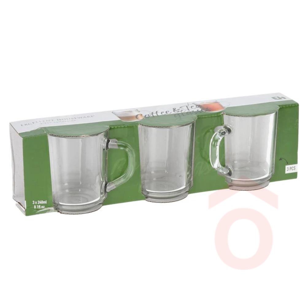 A praktikus és elegáns kialakítású Excellent Houseware üveg bögre szett minden konyha alapdarabja lehet. A füles poharak kényelmes fogást biztosítanak, így ideálisak mindennapi használatra, legyen szó teáról, kávéról vagy más meleg italról.