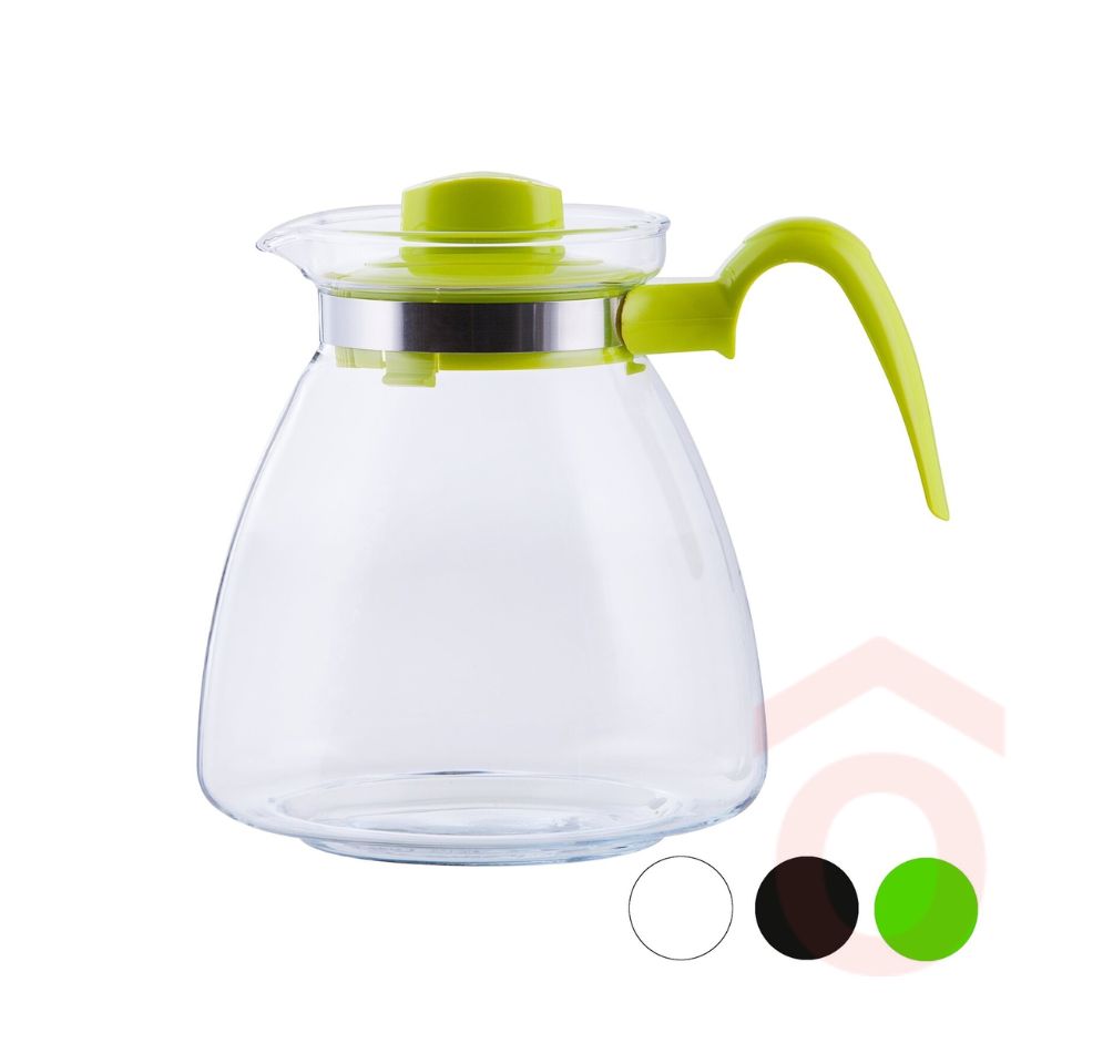 Nagy űrtartalmú, letisztult formavilágú hőálló üveg teáskanna, mely tökéletes választás családi vagy vendégváró teázásokhoz. A 2,1 literes edény ellenáll a magas hőmérsékletnek, így biztonságosan használható forró italokhoz. Műanyag fedelével és ergonomikus fogantyújával kényelmesen kezelhető. Többféle színben is elérhető, hogy illeszkedjen bármilyen konyhai környezethez.