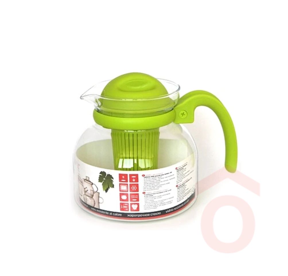 Ideális választás minden teakedvelő számára! A 1,85 literes űrtartalmú, hőálló üvegből készült teáskanna beépített szűrővel rendelkezik, így egyszerűen készíthető benne szálas tea vagy gyógynövényfőzet. A praktikus műanyag fedél és ergonomikus fogantyú biztonságos és kényelmes használatot tesz lehetővé. Elegáns és egyben funkcionális darab a konyhában vagy az étkezőasztalon – akár hétköznapi, akár vendégváró alkalmakhoz.