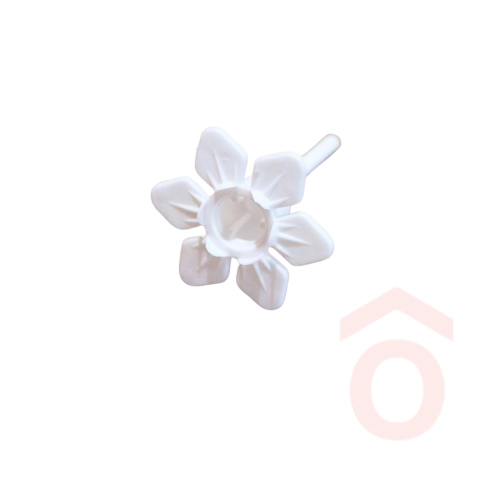 Műanyag virág formájú gyertyatalp fehér színben.