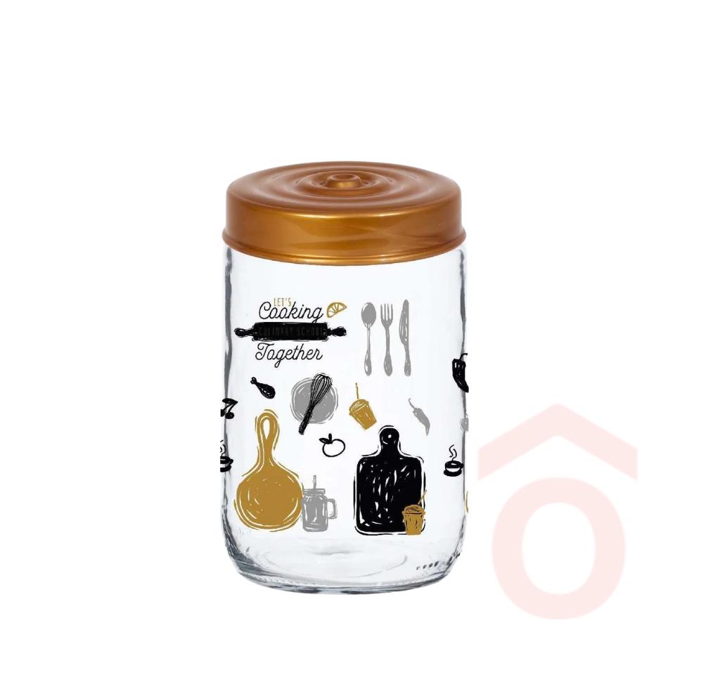 Barnás színvilágú - konyhai mintázattal rendelkező fűszertartó, nem csak fűszereket, de bármilyen élelmiszert is tárolhatsz benne. Üveg falának köszönhetően mindig látható a tartalma.