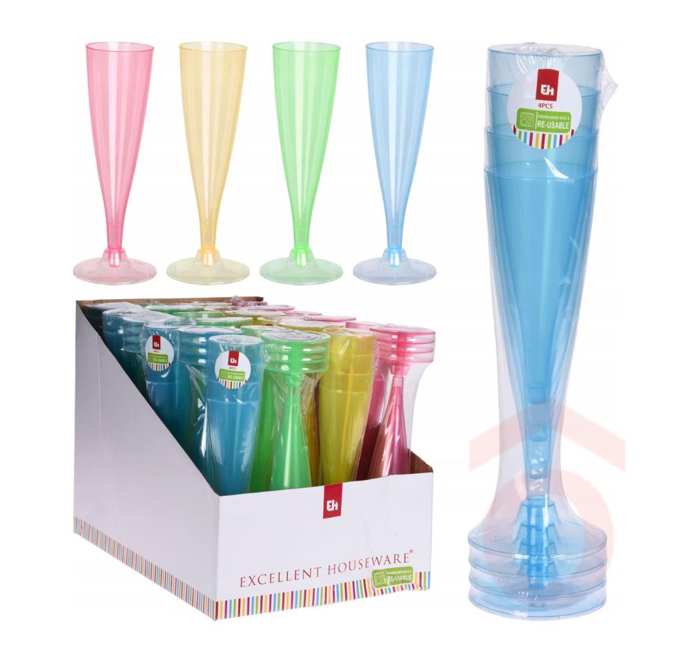 Pohár műanyag üveghatású pezsgős 1,3dl 4db színes 178000450