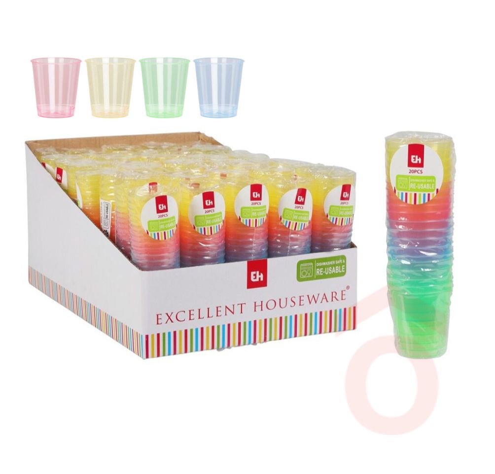 Pohár műanyag üveghatású snapszos 3cl 20db színes 178000650