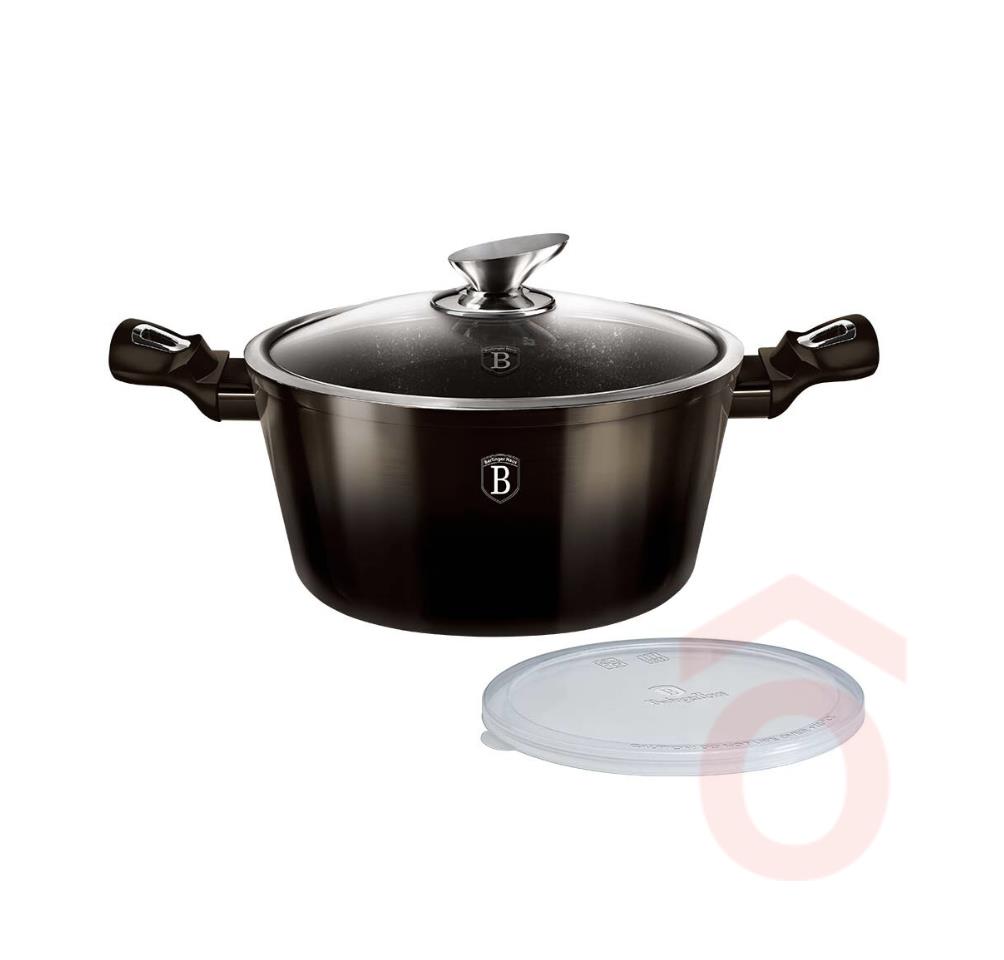 Lábas alu 24cm 4,1l üveg fedővel fényes fekete BH/6605